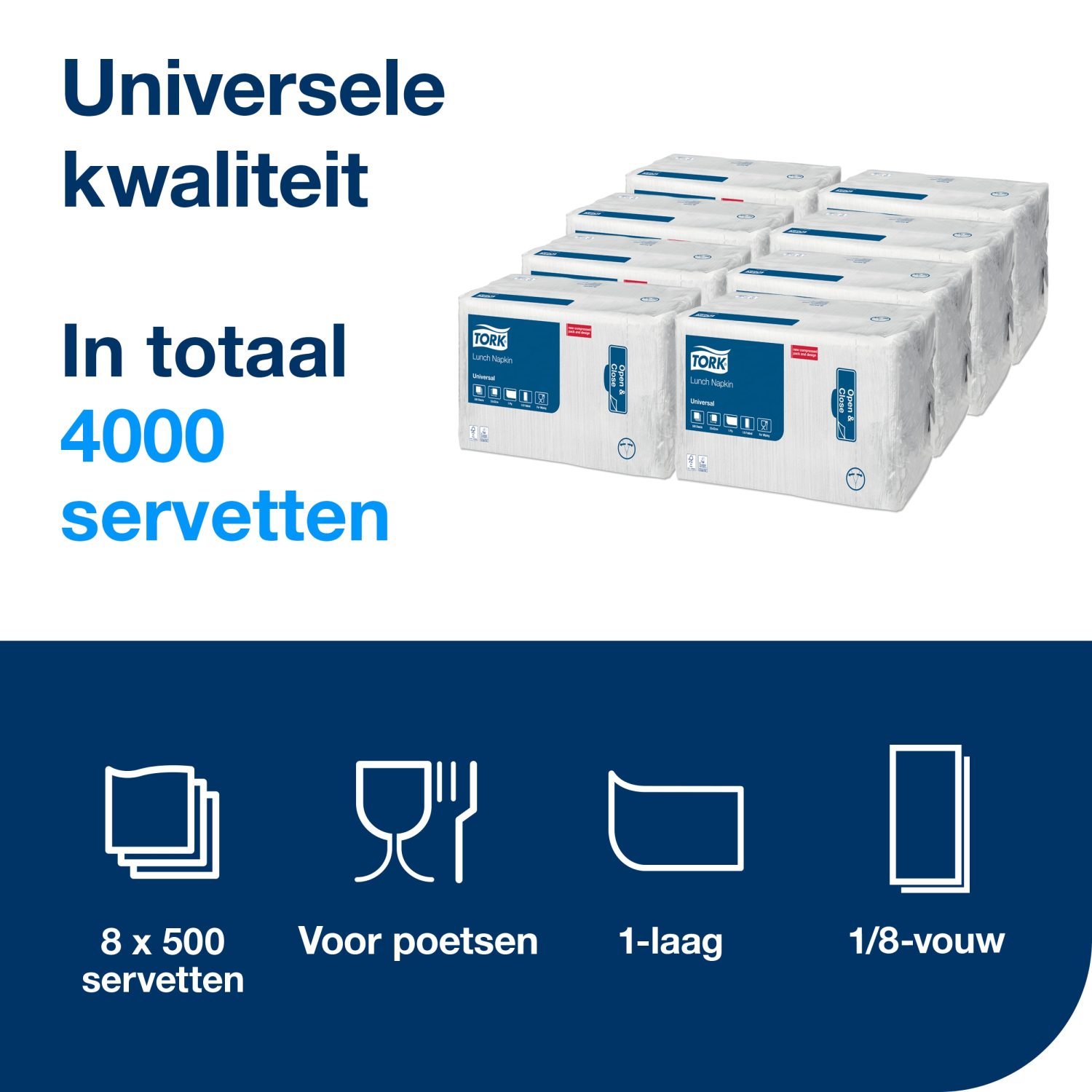 Tork Lunchservet – Universal – 33x33cm – 1/8-vouw – 1-laags – Wit