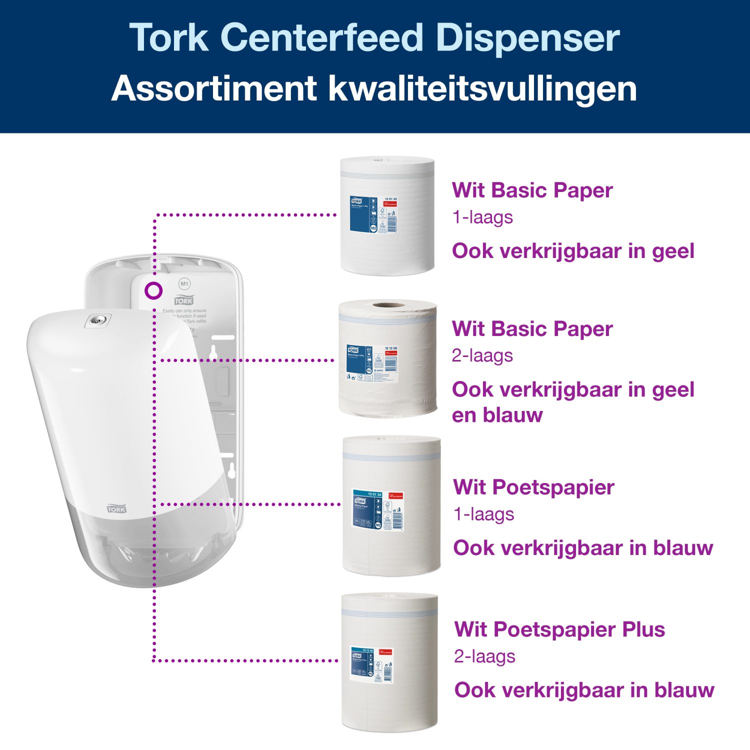 Tork Centerfeed Dispenser: hoge capaciteit voor snel schoonmaken.