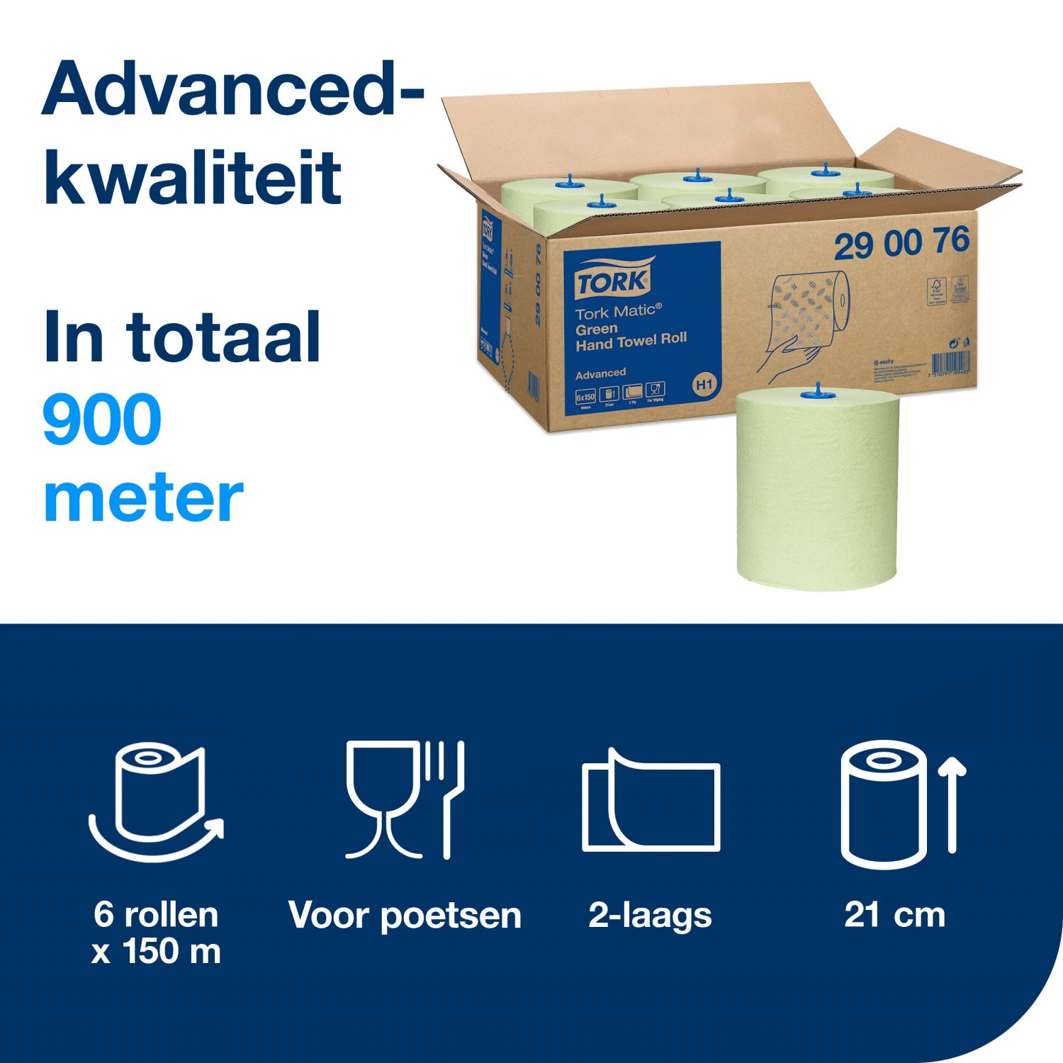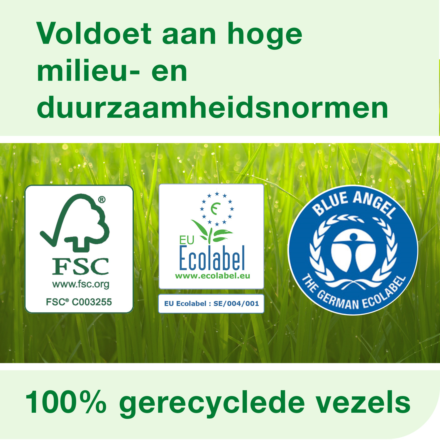 Bij gebruik in combinatie met een compatibele handdoekdispenser met vel-voor-vel-dosering, verminderen gebruikers het aantal handdoeken dat ze gebruiken, wat leidt tot minder afval. Bovendien raken gebruikers alleen de handdoeken aan die ze nodig hebben, wat resulteert in een betere hygiëne. De handdoeken zijn verkrijgbaar in een verpakking van 6 rollen, met elk 1000 vellen.