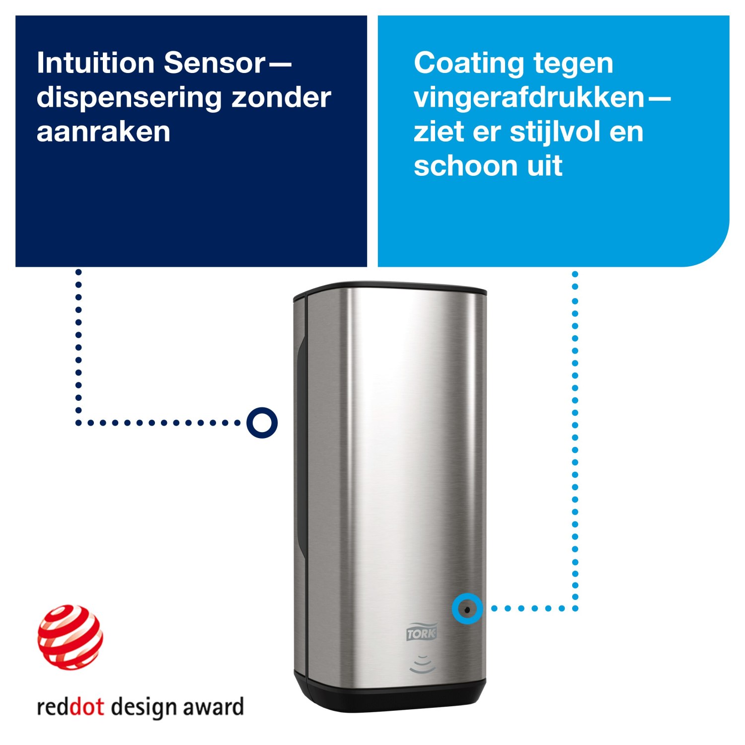 Deze moderne dispenser uit de Image-lijn heeft een strak design dat naadloos in elke ruimte past. Met zijn hoogwaardige uitstraling geeft de dispenser een professionele indruk, ideaal voor zowel bedrijven als particulieren. Het roestvrij staal is voorzien van een coating tegen vingerafdrukken, waardoor het er altijd keurig uitziet en eenvoudig schoon te houden is.