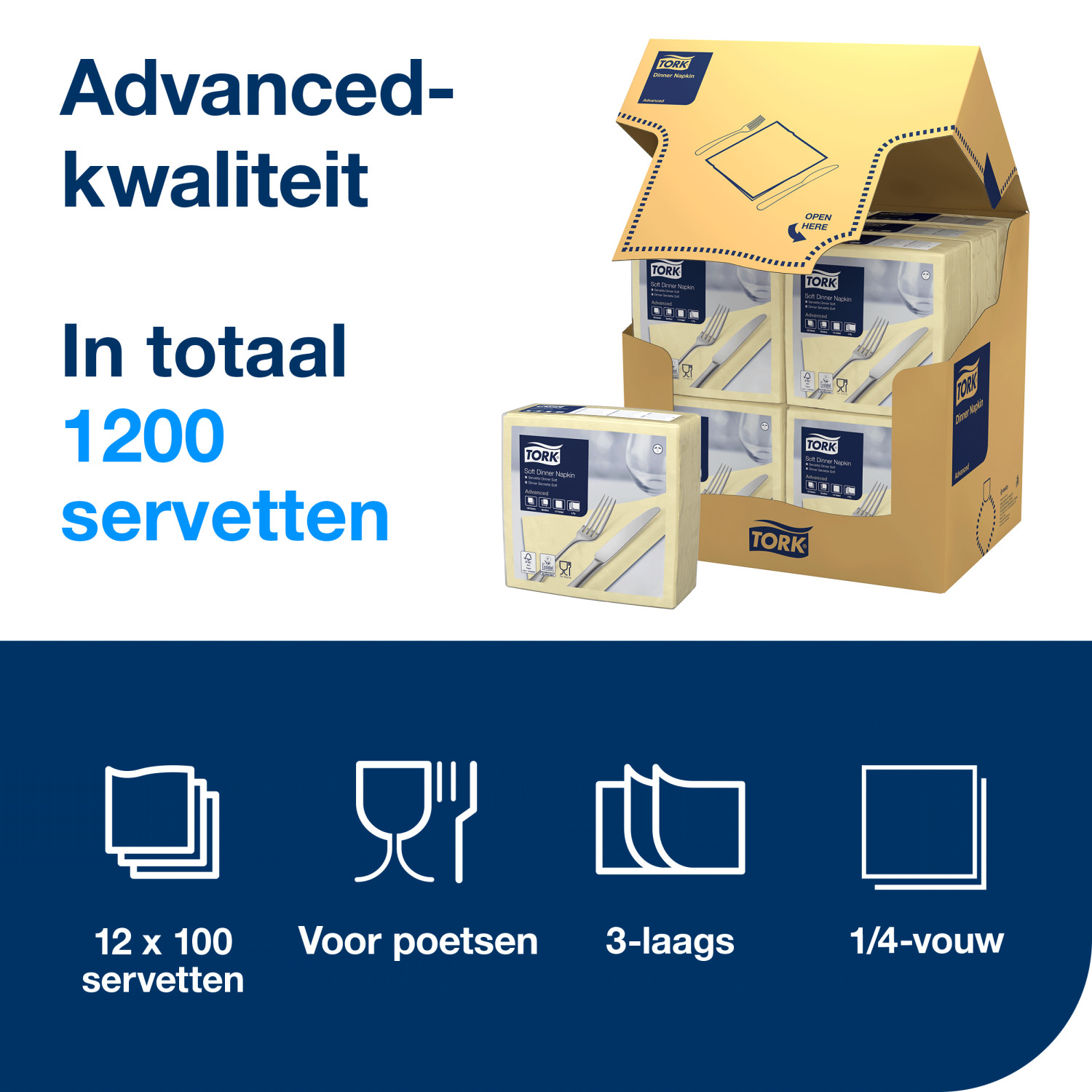 Tork Soft Dinnerservet – Advanced – 39x39cm – 1/4-vouw – 3-laags – Champagne