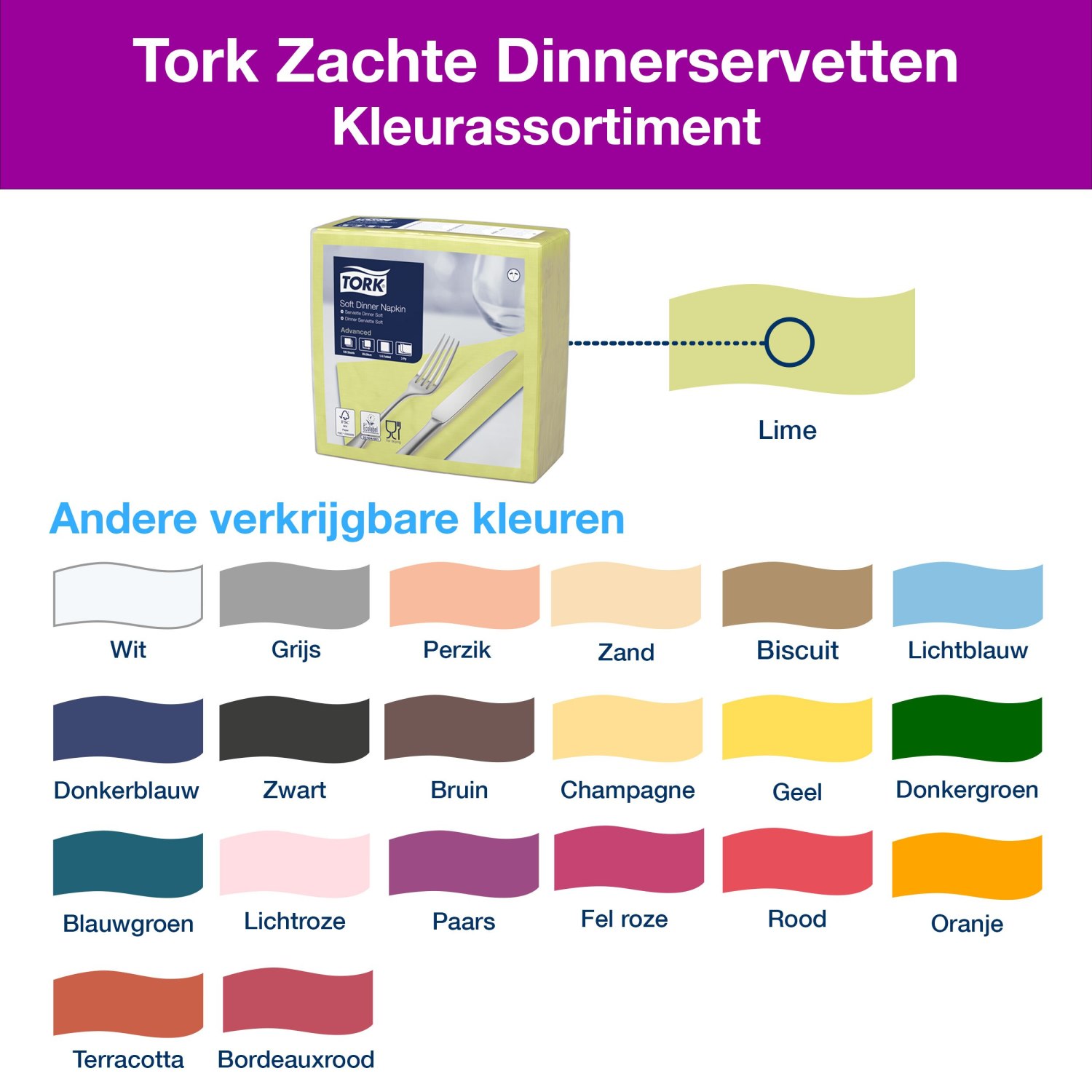 Tork Dinnerservetten: stijlvol en praktisch in diverse kleuren.