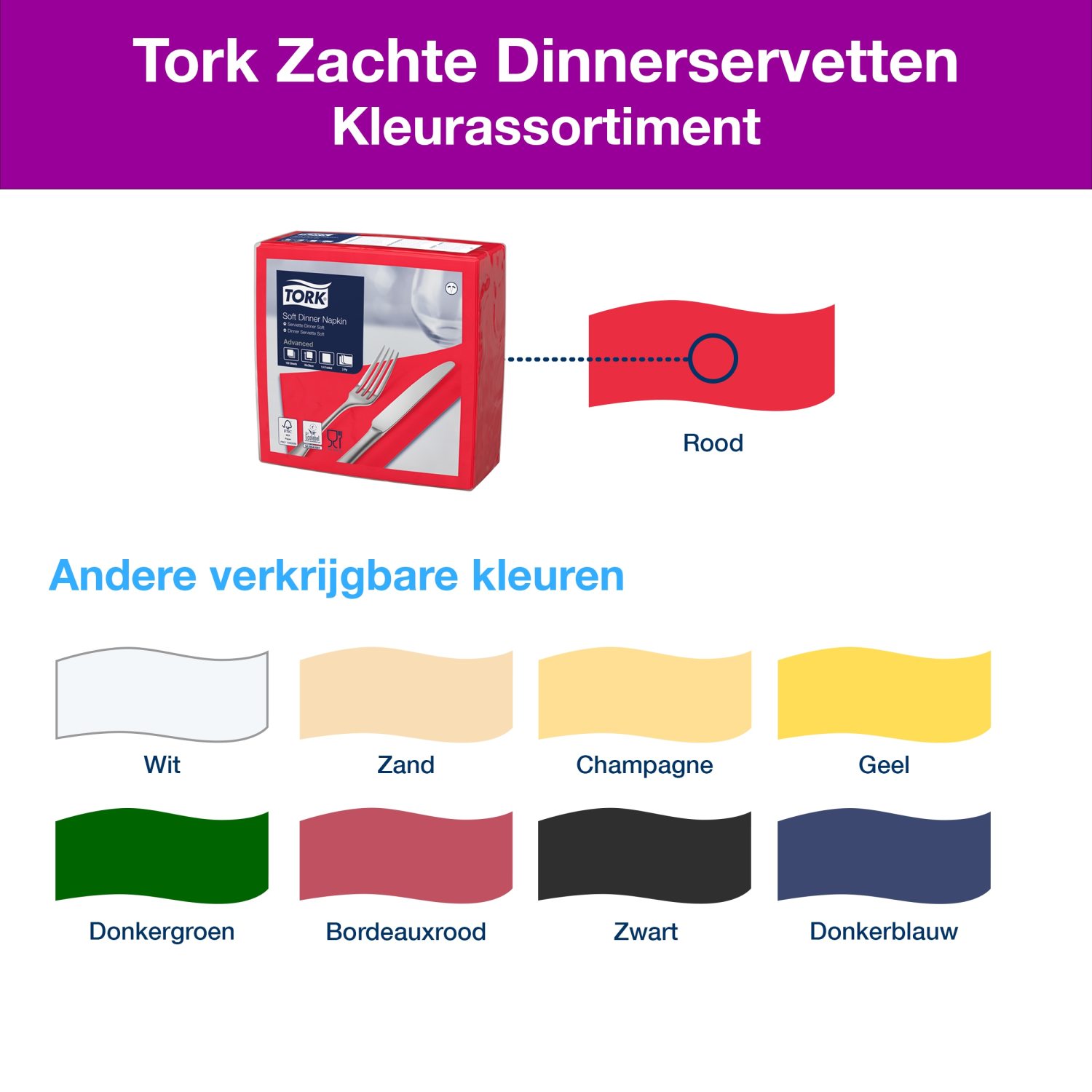 Tork Dinnerservetten: klasse en gebruiksgemak in diverse kleuren.
