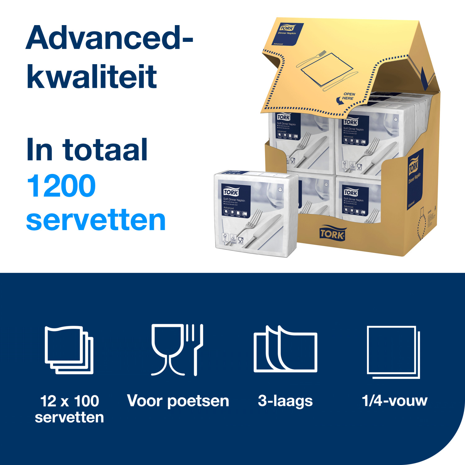 Tork Soft Dinnerservet – Advanced – 39x39cm – 1/4-vouw – 3-laags – Wit