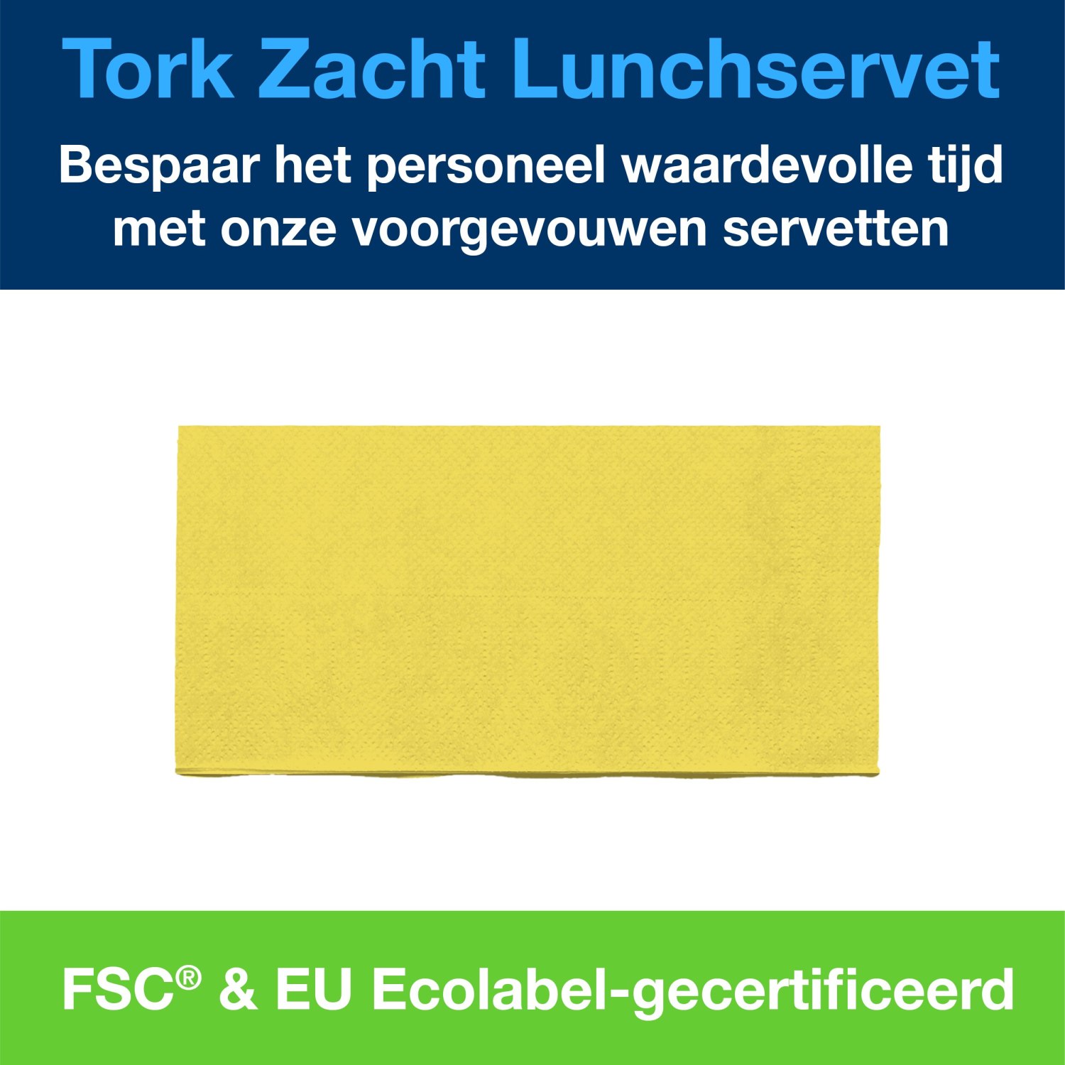 Tork Soft Lunchservet – Advanced – 33x33cm – 1/8-vouw – 3-laags – Geel