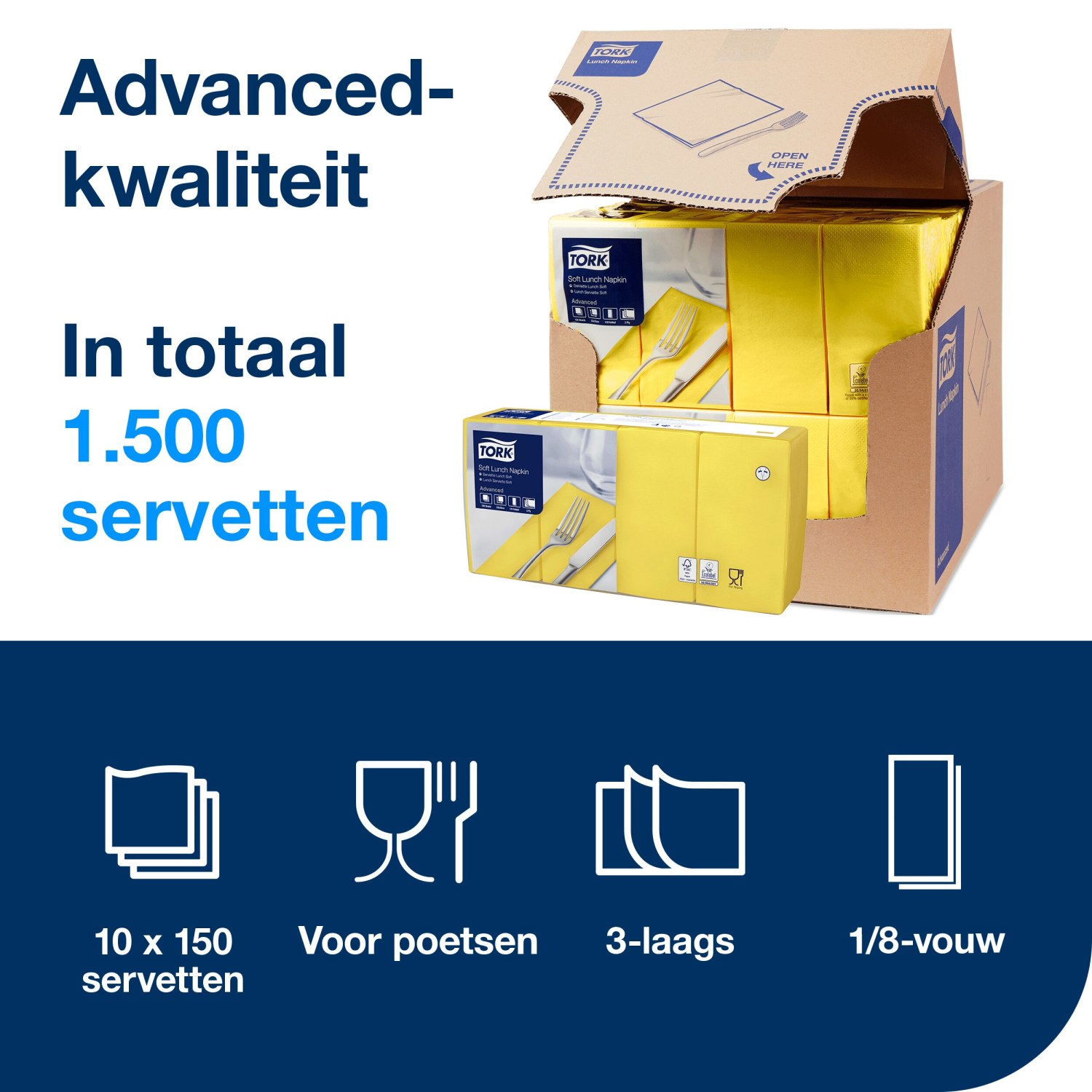 Zorg dat uw gasten op een prettige manier van hun maaltijd kunnen genieten met de zachte servetten van Tork. Deze 3-laagse, extra absorberende servetten zijn perfect voor het snel opruimen van morsen en spills. Het handige formaat maakt ze ideaal voor broodjes, salades of snacks, en ze zijn kostenbesparend zonder in te boeten op kwaliteit. De servetten zijn voorgevouwen, wat uw personeel tijd bespaart tijdens de bediening.