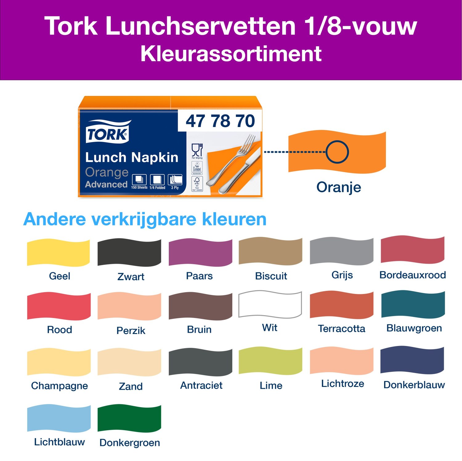 Tork Soft Lunchservetten: 3-laags, absorberend, in diverse kleuren.
