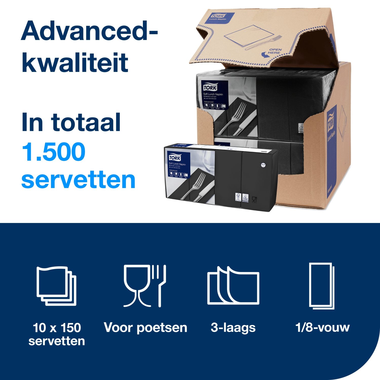 Tork Soft Lunchservet – Advanced – 33x33cm – 1/8-vouw – 3-laags – Zwart