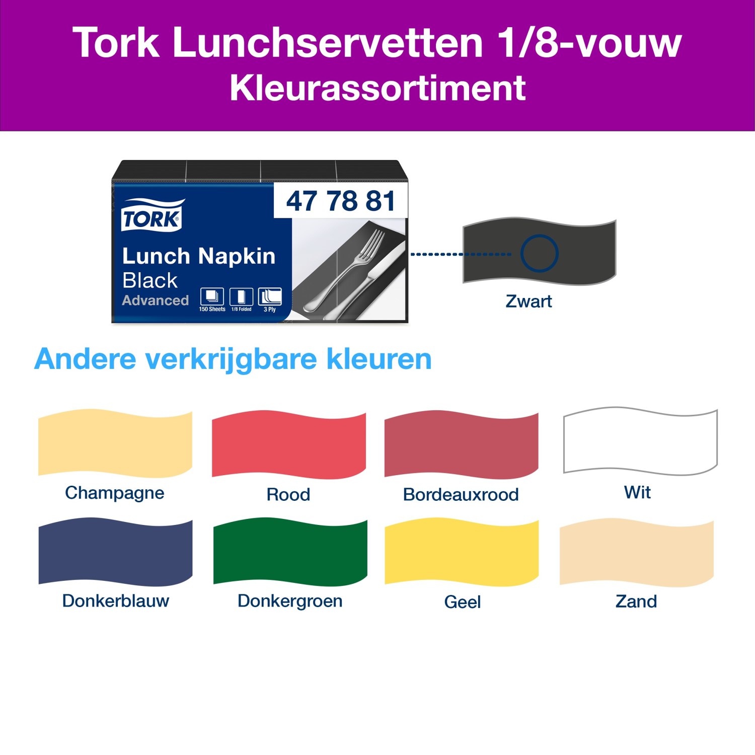 Tork Soft Lunchservetten: 3-laags, absorberend, in diverse kleuren.