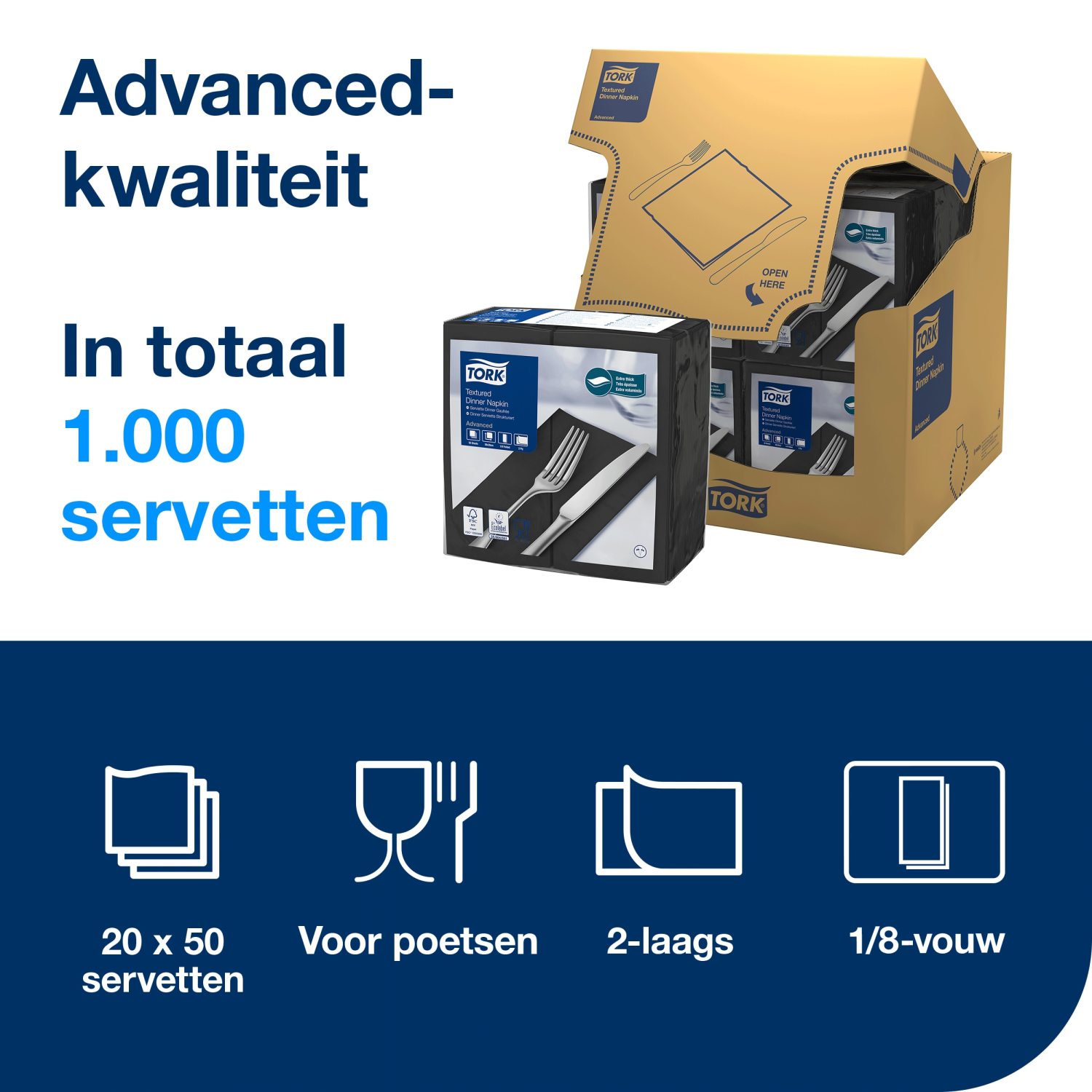 Tork Dinnerservetten: zacht, absorberend en ideaal voor maaltijden.