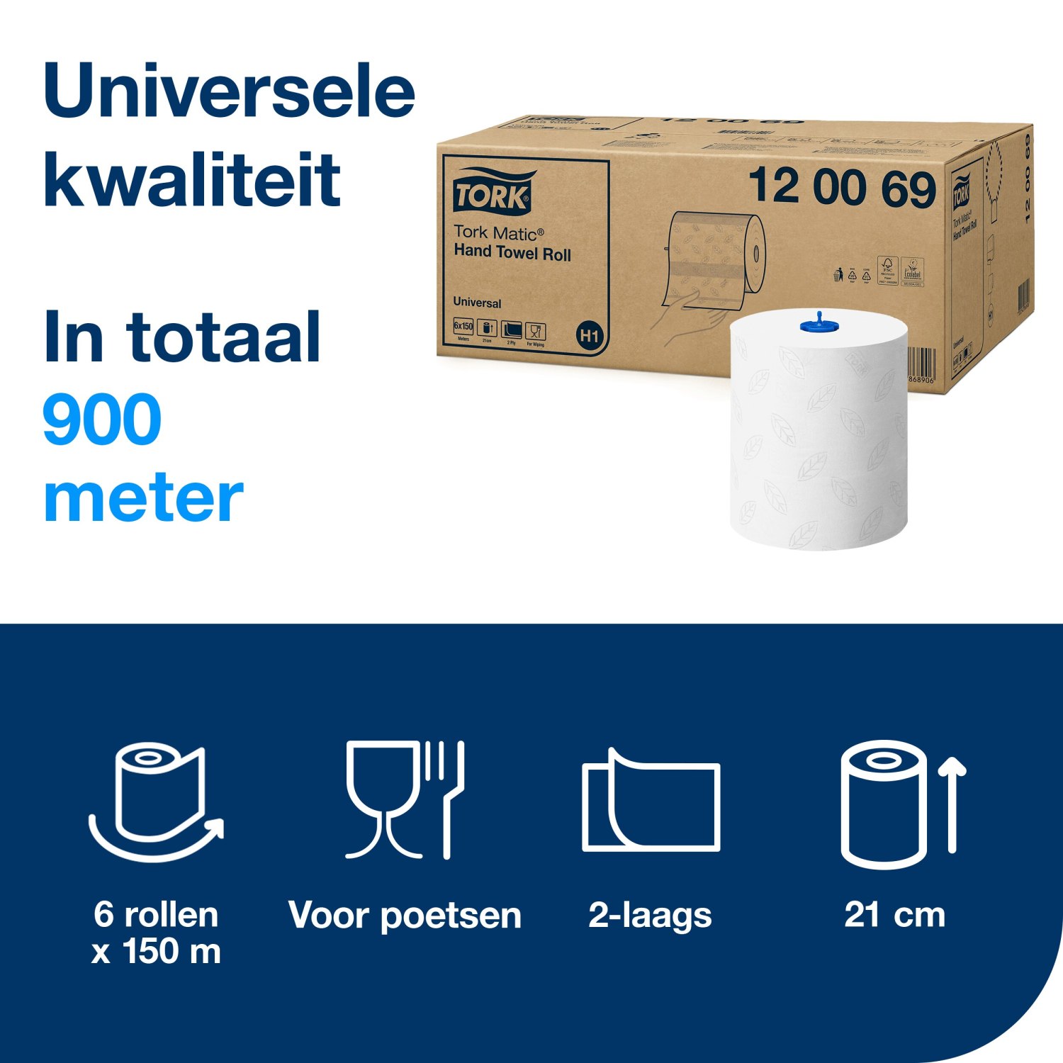 Gebruik de handdoekrollen in combinatie met de Tork Matic® Handdoekrol Dispenser voor eenvoudig onderhoud, meer hygiëne en minder verbruik. Dankzij de vel-voor-vel-dosering raken bezoekers alleen de handdoeken aan die ze daadwerkelijk gebruiken. Elke rol bevat een groot aantal handdoeken, wat zorgt voor een langdurige en efficiënte oplossing voor zowel bedrijven als particulieren.