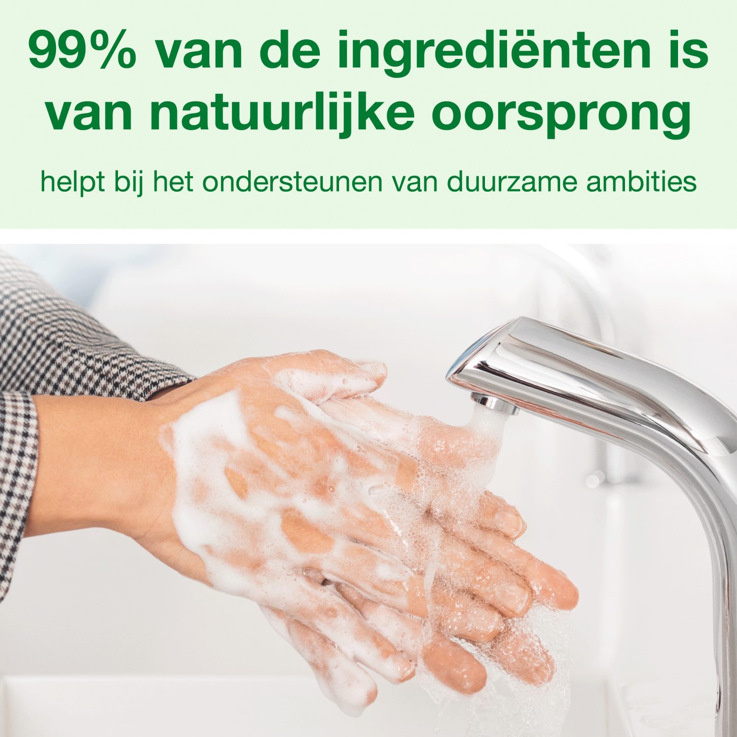 Ontdek de nieuwe Tork Zuivere Schuimzeep, een product dat perfect aansluit bij de duurzaamheidsdoelstellingen zonder in te boeten op hygiëne. Deze schuimzeep bestaat uit een beperkt aantal ingrediënten, waarvan maar liefst 99% van natuurlijke oorsprong is. Dit maakt het een milieuvriendelijke keuze voor zowel bedrijven als particulieren die waarde hechten aan duurzaamheid en gezondheid.