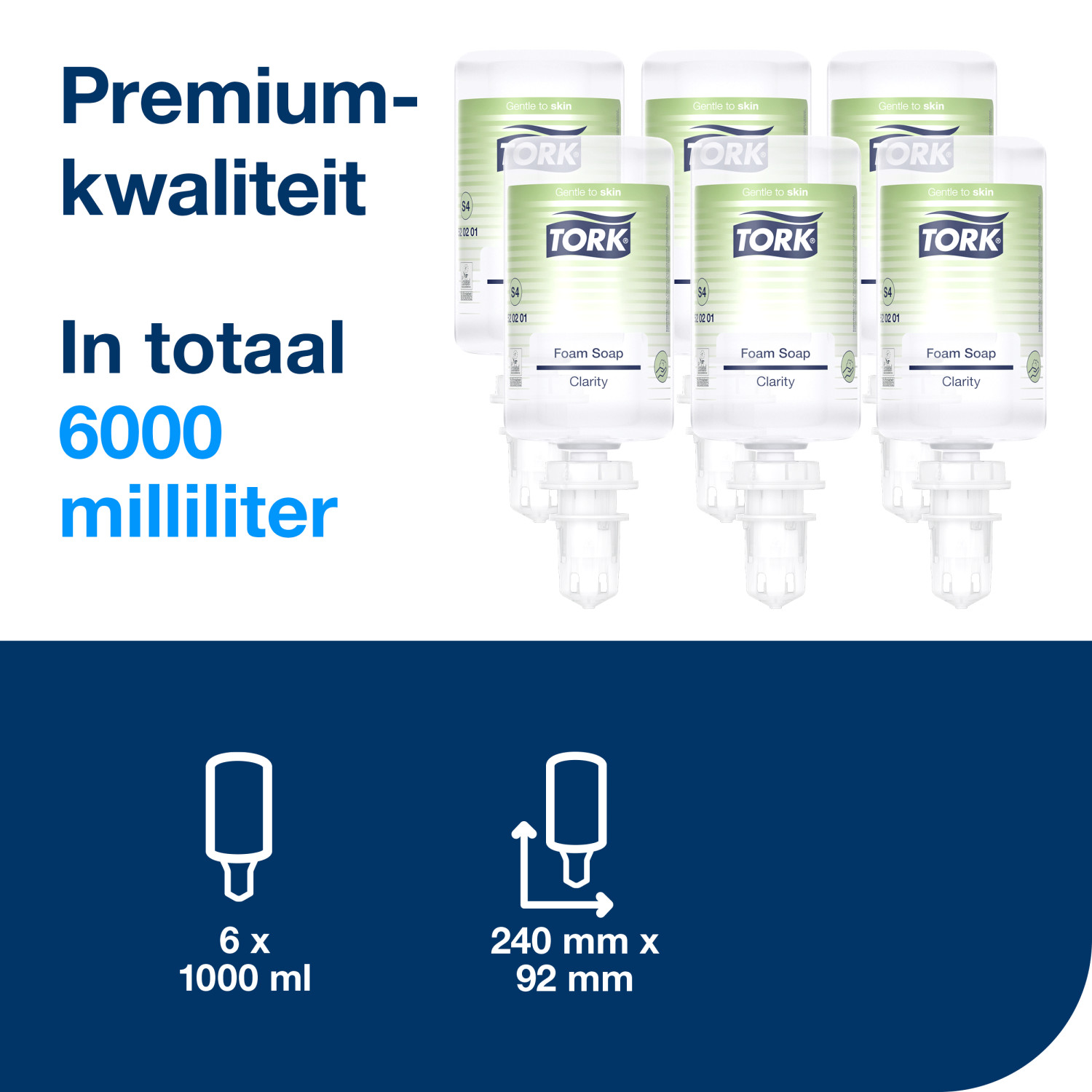 De Tork Zuivere Schuimzeep is speciaal ontworpen voor gebruik in Tork S4 Dispensers en is Easy to use-gecertificeerd. Dankzij de in de fabriek verzegelde fles wordt een optimale handhygiëne gegarandeerd voor alle gebruikers. Verkrijgbaar in een verpakking van 6 stuks, biedt deze zeep een praktische oplossing voor elke omgeving waar hygiëne en duurzaamheid hand in hand gaan.